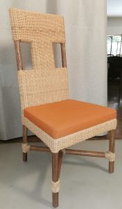 /Ratán y tubo de vara rattan obscura/ Asiento fijo con loneta color naranja/Respaldo con agarradera